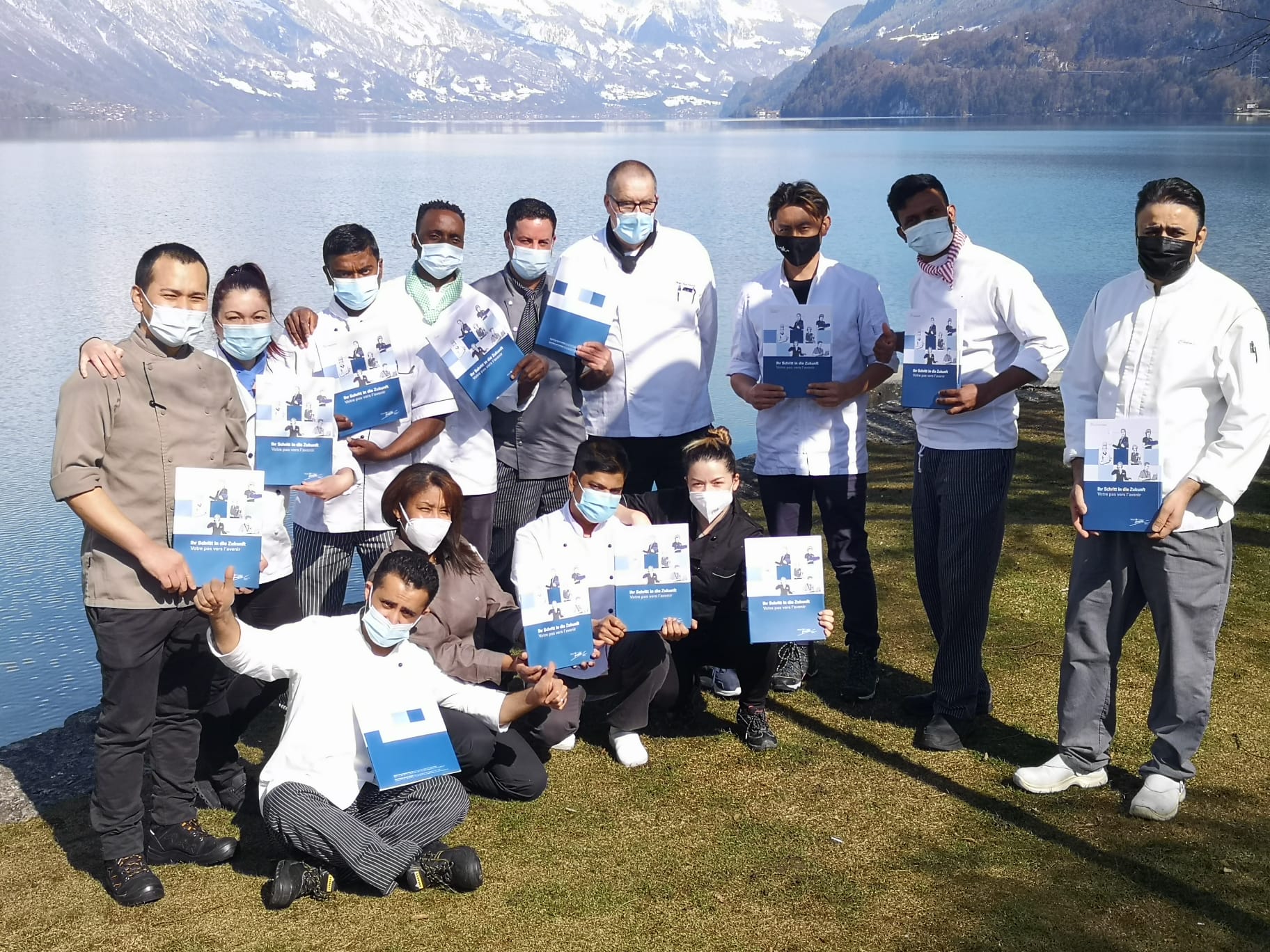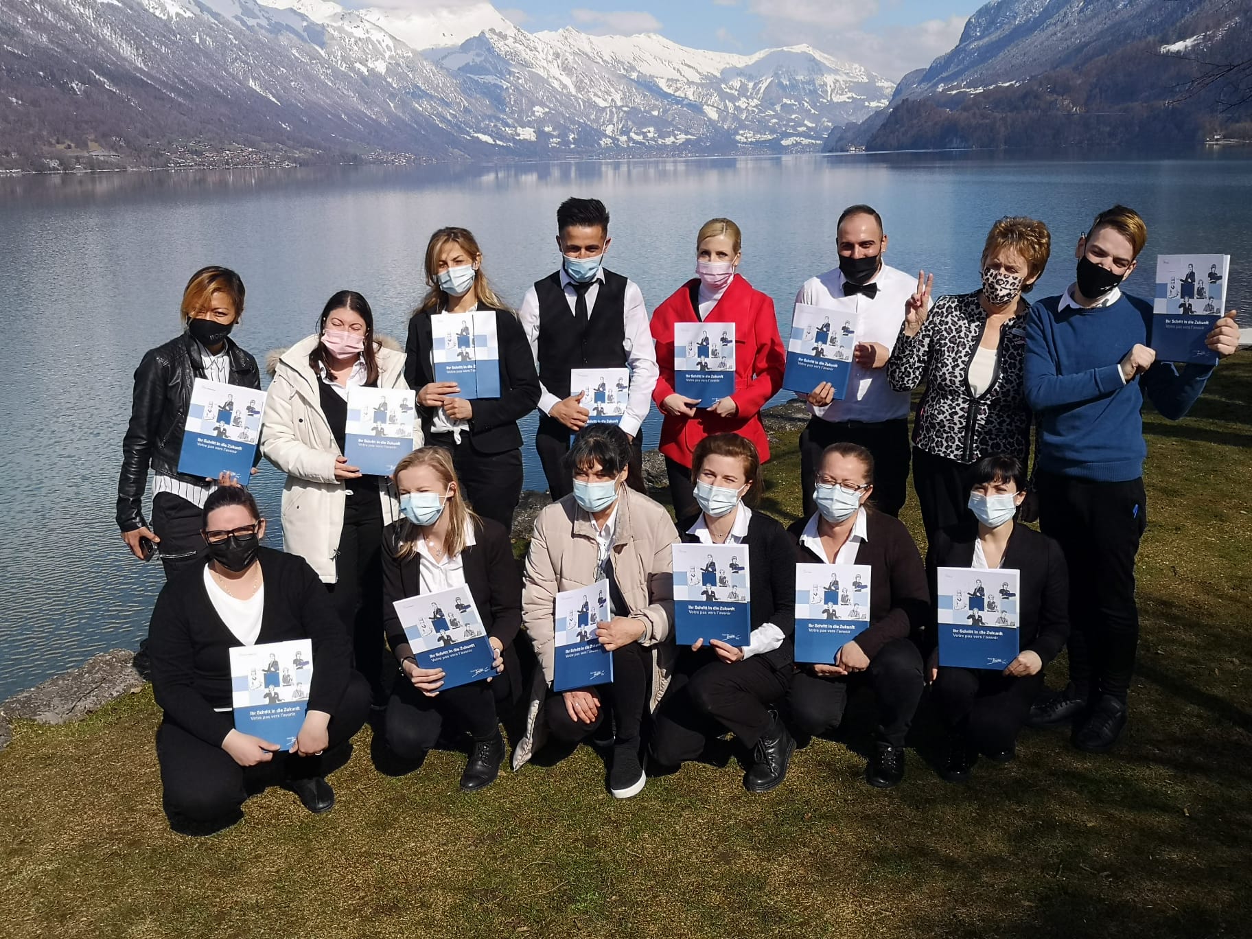 Sie strahlen mit der Sonne um die Wette: Die erfolgreichen Absolventinnen und Absolventen der Progresso-Lehrgänge für Hotellerie-Hauswirtschaft, Service und Küche in Bönigen. Sogar eine Zeitung berichtet über diese Kurse: https://www.jungfrauzeitung.ch/artikel/188935/